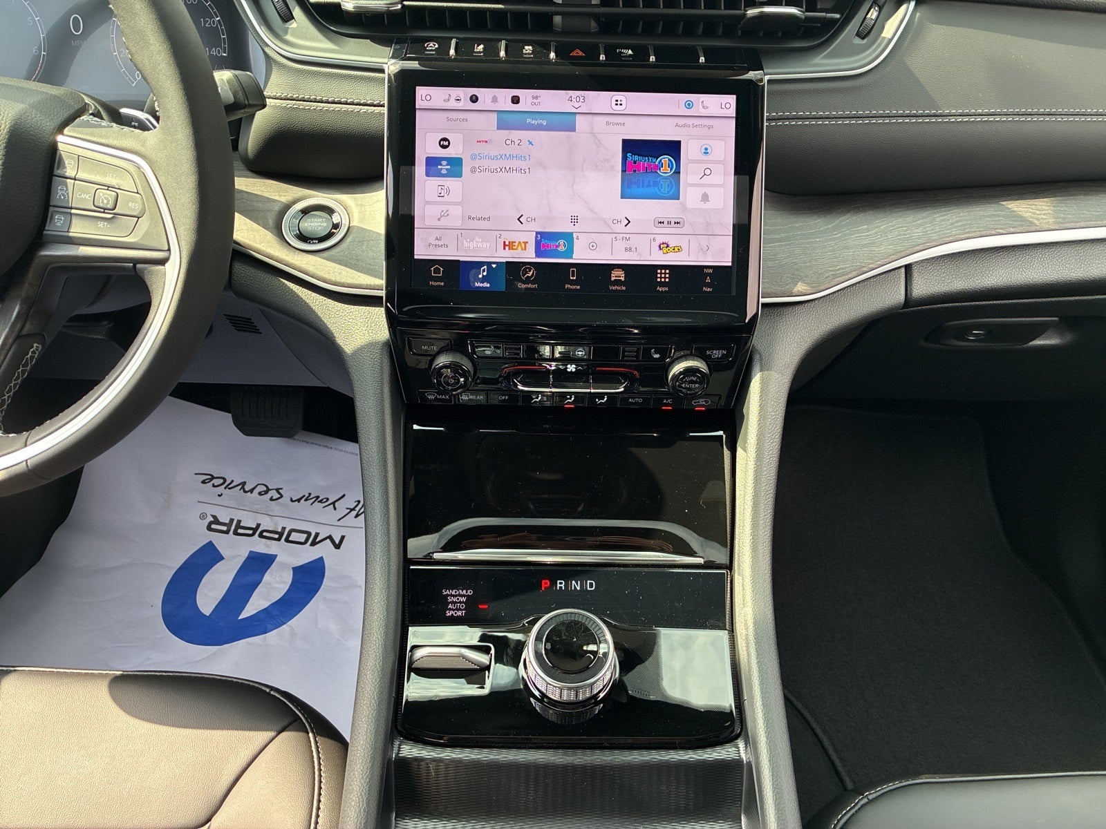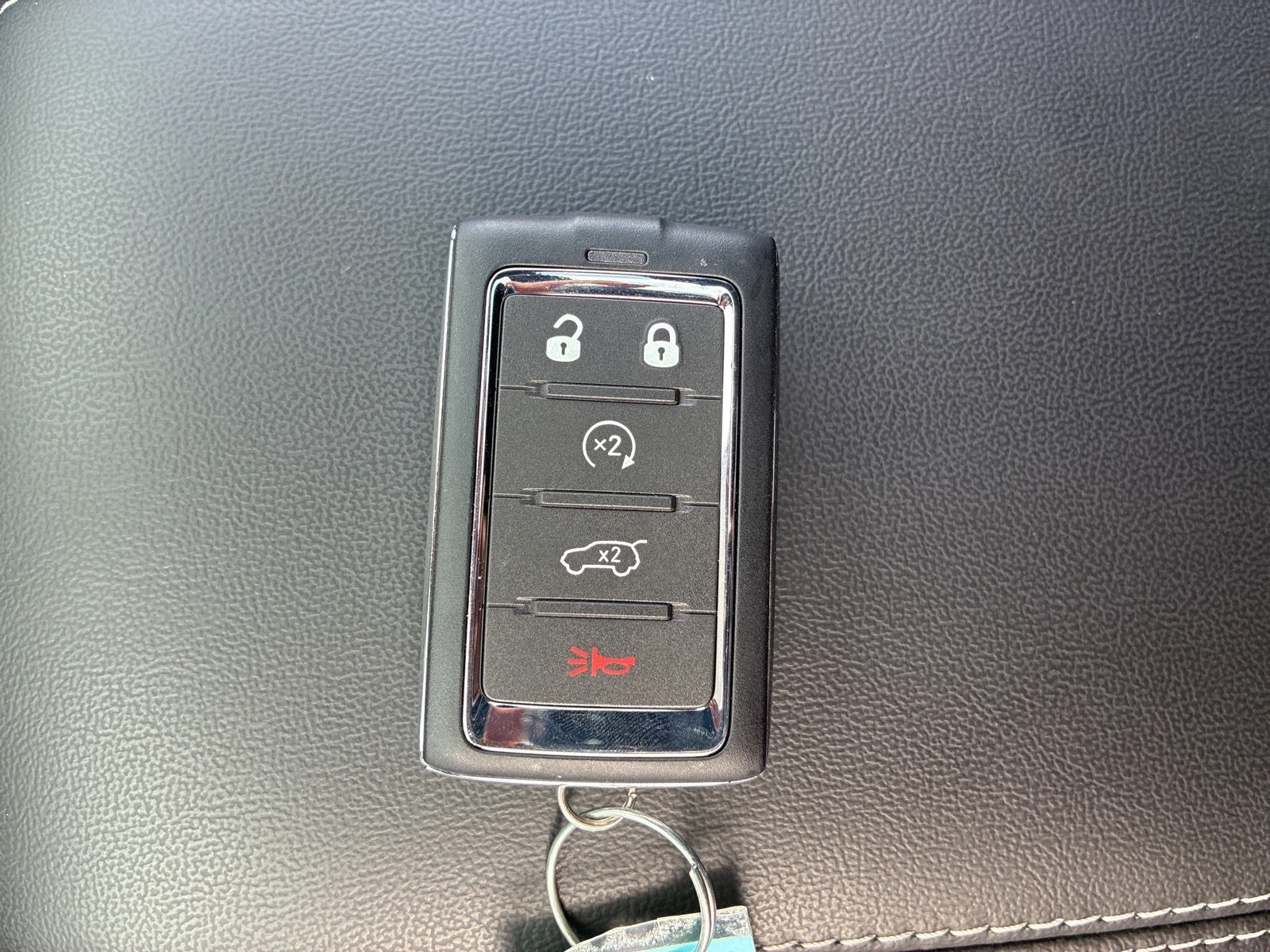3.45 Rear Axle Ratio, 3rd row seats: split-bench, 4-Wheel Disc Brakes, 6 Speakers, ABS brakes, Active Noise Control System, Air Conditioning, Alloy wheels, AM/FM radio: SiriusXM with 360L, Anti-whiplash front head restraints, Audio memory, Auto High-beam Headlights, Automatic temperature control, Brake assist, Bumpers: body-color, Capri Leatherette Seats, Compass, Delay-off headlights, Driver door bin, Driver vanity mirror, Dual front impact airbags, Dual front side impact airbags, Dual-Pane Panoramic Sunroof, Electronic Stability Control, Emergency communication system, Four wheel independent suspension, Front anti-roll bar, Front Bucket Seats, Front Center Armrest w/Storage, Front dual zone A/C, Front fog lights, Front License Plate Bracket, Front reading lights, Fully automatic headlights, Garage door transmitter, Heated door mirrors, Heated front seats, Heated rear seats, Heated steering wheel, Illuminated entry, Interior Rear Facing Camera, Knee airbag, Low tire pressure warning, Manual Fold Seatbacks, Memory seat, Model Year Tracking, Navigation System, Normal Duty Suspension, Occupant sensing airbag, Outside temperature display, Overhead airbag, Overhead console, Panic alarm, ParkView Rear Back-Up Camera, Passenger door bin, Passenger vanity mirror, Power door mirrors, Power driver seat, Power Liftgate, Power passenger seat, Power steering, Power windows, Quick Order Package 22E, Radio data system, Radio: Uconnect 5 Nav with 10.1 Display, Rear air conditioning, Rear anti-roll bar, Rear reading lights, Rear window defroster, Rear window wiper, Reclining 3rd row seat, Remote keyless entry, Security system, Speed control, Speed-Sensitive Wipers, Split folding rear seat, Spoiler, Steering wheel mounted audio controls, Tachometer, Telescoping steering wheel, Tilt steering wheel, Traction control, Trip computer, Turn signal indicator mirrors, Variably intermittent wipers, Voltmeter, Wheels: 18 x 8.0 Polished/Painted Aluminum.