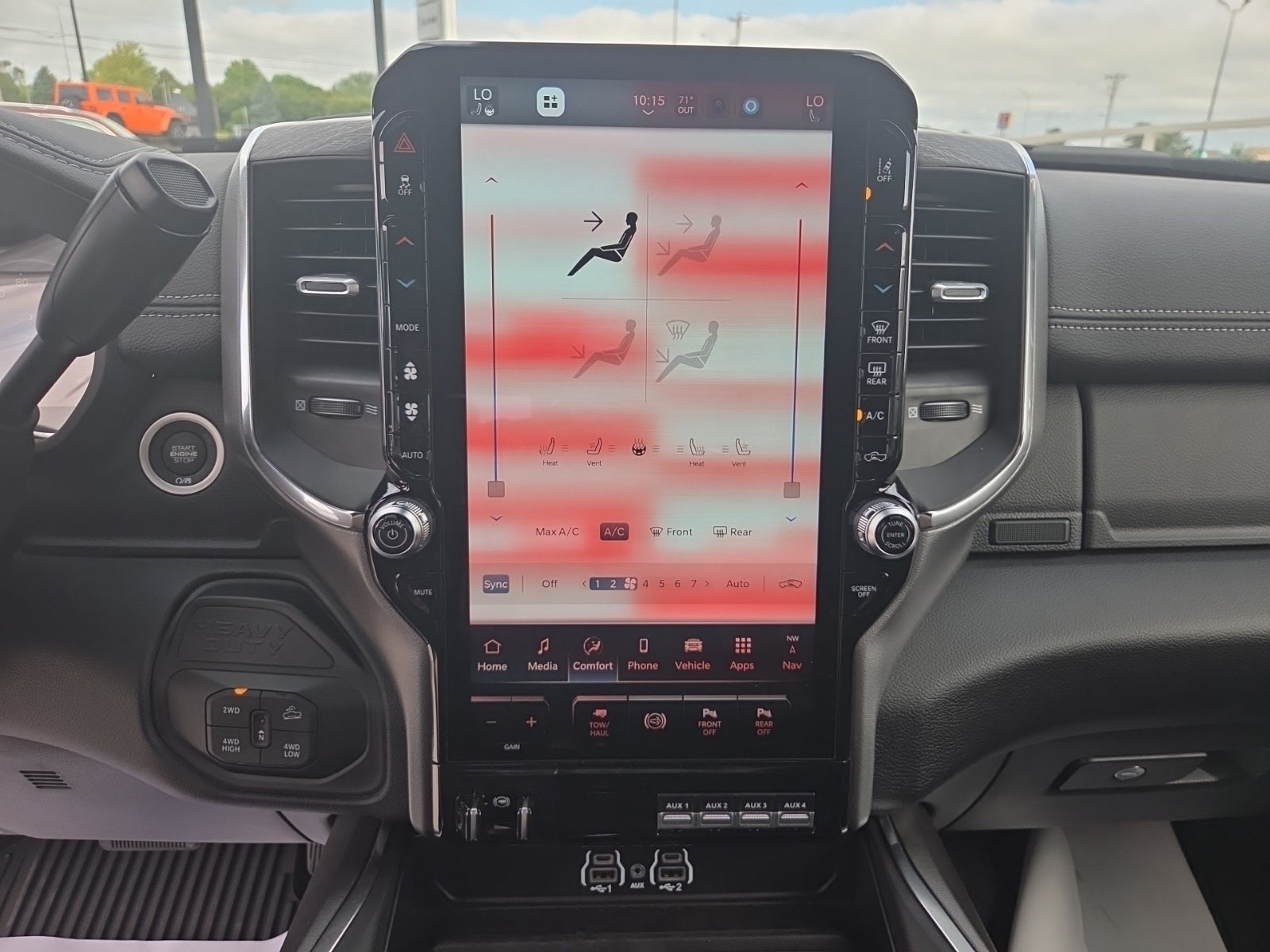 #1 Seat Foam Cushion, 10 Speakers, 115V Auxiliary Rear Power Outlet, 14.4 Touchscreen Display, 17 Speaker harman/kardon Premium Sound, 2 Way Rear Headrest Seat, 2nd Row In Floor Storage Bins, 3.42 Axle Ratio, 3.73 Axle Ratio, 4 Way Front Headrests, 4-Wheel Disc Brakes, 4G LTE Wi-Fi Hot Spot, 5th Wheel/Gooseneck Towing Prep Group, ABS brakes, Active Lane Management System, Adaptive Steering System, Air Conditioning, Alexa Built-In, Alloy wheels, AM/FM radio: SiriusXM with 360L, Anti-Spin Differential Rear Axle, Apple CarPlay, Apple CarPlay/Android Auto, Auto Adjust In Reverse Exterior Mirrors, Auto Dim Exterior Mirror, Auto High Beam Headlamp Control, Auto Power-Folding Mirrors, Auto-Dimming Exterior Passenger Mirror, Auto-dimming Rear-View mirror, Automatic temperature control, Black Wheel Center Hub, Body Color Grille Surround, Brake assist, Bucket Seats, Bumpers: body-color, Center Hub, Chrome Exterior Mirrors, Clearance Lamps, Compass, Connected Travel & Traffic Services, Connectivity - US/Canada, CTR Stop Lamp w/Cargo View Camera, Dash Pass Thru Wire Circuits, Delay-off headlights, Disassociated Touchscreen Display, Driver door bin, Driver vanity mirror, Drowsy Driver Detection, Dual front impact airbags, Dual front side impact airbags, Dual Wireless Charging Pad, Electronic Stability Control, Emergency Vehicle Alert System (EVAS), Exterior Mirrors Courtesy Lamps, Exterior Mirrors w/Heating Element, Exterior Mirrors w/Memory, Exterior Mirrors w/Supplemental Signals, Foam Bottle Insert (Door Trim Panel), Folding Flat Load Floor Storage, Forward & Reverse Utility Lights, Front anti-roll bar, Front Center Armrest w/Storage, Front dual zone A/C, Front fog lights, Front License Plate Bracket, Front Performance Tuned Shock Absorbers, Front reading lights, Front Seat Back Map Pockets, Full Length Upgraded Floor Console, Fully automatic headlights, Garage door transmitter, Global Telematics Box Module (TBM), Google Android Auto, GPS Antenna Input, GPS Navigation, HD Radio, Heated door mirrors, Heated Front Seats, Heated front seats, Heated Steering Wheel, Heated steering wheel, High Back Seats, I/P Mounted Auxiliary Switches, Illuminated entry, Integrated Voice Command w/Bluetooth®, Laramie Level 2 Plus Equipment Group, Leather Trim 40/20/40 Bench Seat, Leather Trimmed Bucket Seats, LED Bed Lighting, Low tire pressure warning, Manufacturer's Statement of Origin, Mirror Running Lights, MOPAR Deployable Bed Step, MOPAR Front & Rear Rubber Floor Mats, MOPAR Spray In Bedliner, Navigation System, Occupant sensing airbag, Off Road Package, Off-Road Info Pages, Outside temperature display, Overhead airbag, Overhead console, Panic alarm, ParkView Rear Back-Up Camera, Passenger door bin, Passenger vanity mirror, Power 2-Way Driver Lumbar Adjust, Power 2-Way Passenger Lumbar Adjust, Power Adjust 8-Way Driver Seat, Power Adjust 8-Way Front Passenger Seat, Power Adjust Mirrors, Power Adjustable Convex Aux Mirrors, Power Adjustable Pedals w/Memory, Power Deployable Running Boards, Power door mirrors, Power driver seat, Power Heated Fold Telescopic Mirrors w/Memory, Power passenger seat, Power steering, Power Sunroof, Power Telescoping Mirrors, Power windows, Quick Order Package 24H Laramie, Radio data system, Radio: Uconnect 5 Nav w/12.0 Display, Radio: Uconnect 5 Nav w/14.4 Display, Rain Sensitive Windshield Wipers, Rear 60/40 Folding Seat, Rear anti-roll bar, Rear Performance Tuned Shock Absorbers, Rear reading lights, Rear seat center armrest, Rear step bumper, Rear window defroster, Remote keyless entry, Remote Tailgate Release, Security system, Selectable Tire Fill Alert, SiriusXM Radio Service, SiriusXM w/360L, Speed control, Split folding rear seat, Sport Appearance Package, Sport Decal, Sport Performance Hood, Steering wheel mounted audio controls, Tachometer, Tilt steering wh Price includes: $2000 - 2025 National Bonus Cash . Exp. 02/02/2