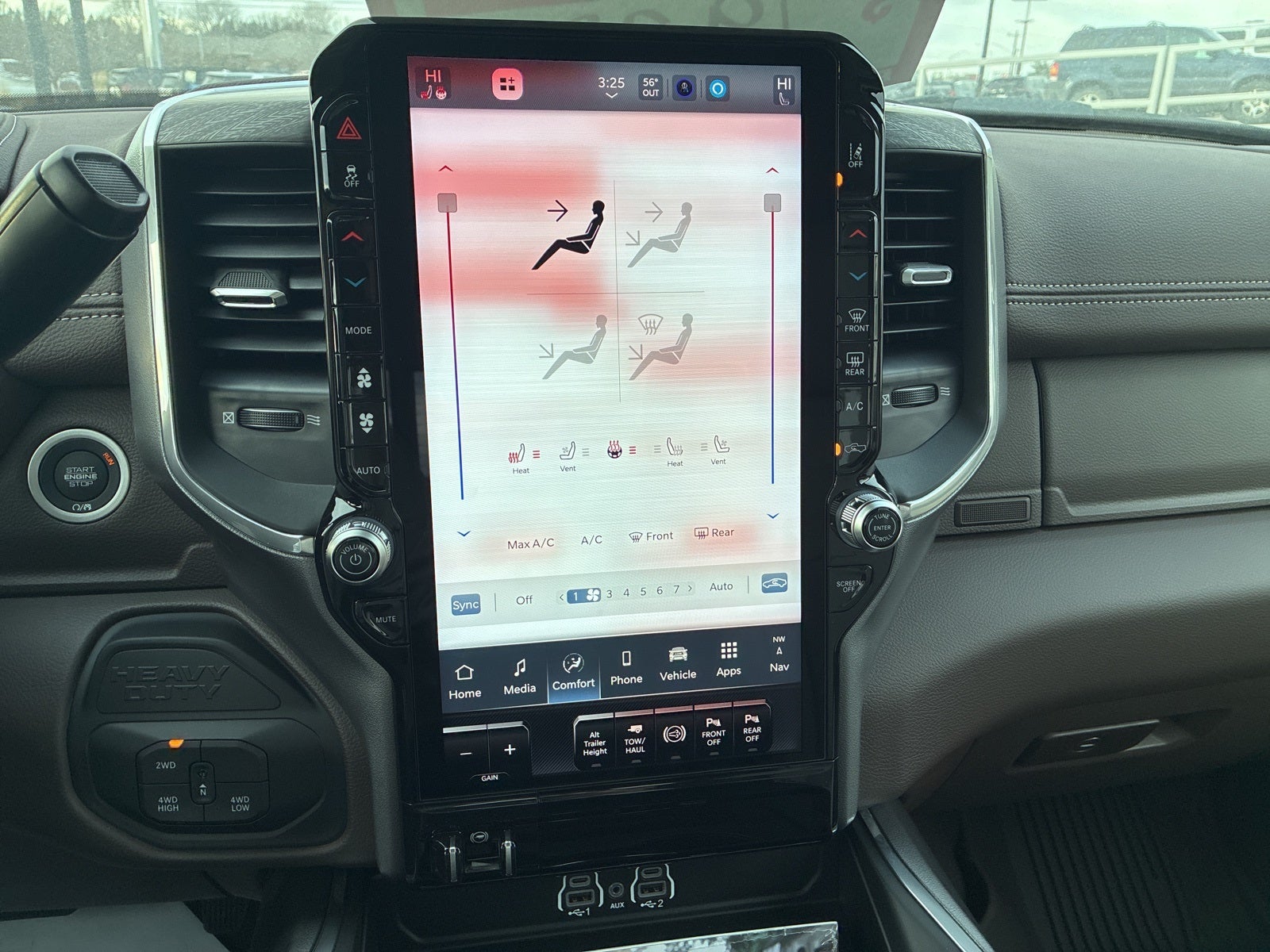 #1 Seat Foam Cushion, 10 Speakers, 115V Auxiliary Rear Power Outlet, 14.4 Touchscreen Display, 17 Speaker harman/kardon Premium Sound, 2 Way Rear Headrest Seat, 2nd Row In Floor Storage Bins, 3.73 Axle Ratio, 4 Way Front Headrests, 4-Wheel Disc Brakes, 4G LTE Wi-Fi Hot Spot, ABS brakes, Active Lane Management System, Adaptive Steering System, Air Conditioning, Alexa Built-In, Alloy wheels, AM/FM radio: SiriusXM with 360L, Anti-Spin Differential Rear Axle, Apple CarPlay, Apple CarPlay/Android Auto, Auto Adjust In Reverse Exterior Mirrors, Auto Dim Exterior Mirror, Auto High Beam Headlamp Control, Auto Level Rear Air Suspension, Auto Power-Folding Mirrors, Auto-Dimming Exterior Passenger Mirror, Auto-dimming Rear-View mirror, Automatic temperature control, Black Wheel Center Hub, Brake assist, Bright Front Bumper, Bright Rear Bumper, Bucket Seats, Bumpers: body-color, Chrome Bumper Package, Chrome Exterior Mirrors, Clearance Lamps, Cold Weather Group, Compass, Connected Travel & Traffic Services, Connectivity - US/Canada, CTR Stop Lamp w/Cargo View Camera, Delay-off headlights, Disassociated Touchscreen Display, Driver door bin, Driver vanity mirror, Drowsy Driver Detection, Dual front impact airbags, Dual front side impact airbags, Dual Wireless Charging Pad, Electronic Stability Control, Emergency Vehicle Alert System (EVAS), Engine Block Heater, Exterior Mirrors Courtesy Lamps, Exterior Mirrors w/Heating Element, Exterior Mirrors w/Memory, Exterior Mirrors w/Supplemental Signals, Foam Bottle Insert (Door Trim Panel), Folding Flat Load Floor Storage, Forward & Reverse Utility Lights, Front anti-roll bar, Front Center Armrest w/Storage, Front dual zone A/C, Front fog lights, Front reading lights, Front Seat Back Map Pockets, Full Length Upgraded Floor Console, Fully automatic headlights, Garage door transmitter, Global Telematics Box Module (TBM), Google Android Auto, GPS Antenna Input, GPS Navigation, HD Radio, Heated door mirrors, Heated Front Seats, Heated front seats, Heated Steering Wheel, Heated steering wheel, High Back Seats, Illuminated entry, Integrated Voice Command w/Bluetooth®, Laramie Level 2 Plus Equipment Group, Leather Trim 40/20/40 Bench Seat, Leather Trimmed Bucket Seats, LED Bed Lighting, Low tire pressure warning, Mirror Running Lights, MOPAR Deployable Bed Step, MOPAR Front & Rear Rubber Floor Mats, MOPAR Spray In Bedliner, MOPAR Winter Front Grille Cover, Navigation System, Occupant sensing airbag, Off-Road Info Pages, Outside temperature display, Overhead airbag, Overhead console, Panic alarm, ParkView Rear Back-Up Camera, Passenger door bin, Passenger vanity mirror, Power 2-Way Driver Lumbar Adjust, Power 2-Way Passenger Lumbar Adjust, Power Adjust 8-Way Driver Seat, Power Adjust 8-Way Front Passenger Seat, Power Adjust Mirrors, Power Adjustable Convex Aux Mirrors, Power Adjustable Pedals w/Memory, Power Deployable Running Boards, Power door mirrors, Power driver seat, Power Heated Fold Telescopic Mirrors w/Memory, Power passenger seat, Power steering, Power Sunroof, Power Telescoping Mirrors, Power windows, Quick Order Package 24H Laramie, Radio data system, Radio: Uconnect 5 Nav w/12.0 Display, Radio: Uconnect 5 Nav w/14.4 Display, Rain Sensitive Windshield Wipers, Rear 60/40 Folding Seat, Rear anti-roll bar, Rear Backup Alarm, Rear reading lights, Rear seat center armrest, Rear step bumper, Rear window defroster, Remote keyless entry, Remote Tailgate Release, Security system, Selectable Tire Fill Alert, SiriusXM Radio Service, SiriusXM w/360L, Speed control, Split folding rear seat, Steering wheel mounted audio controls, Surround View Camera System, Tachometer, Tilt steering wheel, Towing Technology Group, Traction control, Traffic Sign Recognition, Trailer Reverse Guidance, Trailer Tire Pressure Monitoring System, Trailer Tow Pages, Trip computer, T Price includes: $2000 - 2025 National Bonus Cash . Exp. 02/02/2