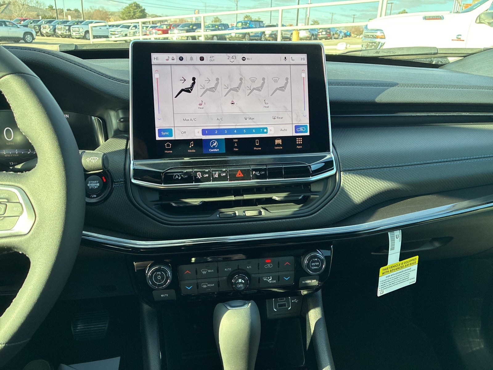 10.1 Touchscreen Display, 3.73 Final Drive Ratio, 4-Wheel Disc Brakes, 4G LTE Wi-Fi Hot Spot, 6 Speakers, ABS brakes, Air Conditioning, Alexa Built-In, Alloy wheels, AM/FM radio: SiriusXM, Auto High-beam Headlights, Auto-dimming Rear-View mirror, Automatic temperature control, Black Day Light Opening Moldings, Brake assist, Bumpers: body-color, Cluster 10.25 TFT Color Display, Compass, Connected Travel and Traffic Services, Delay-off headlights, Driver door bin, Driver vanity mirror, Dual front impact airbags, Dual front side impact airbags, Electronic Stability Control, Emergency communication system: SiriusXM Guardian, Four wheel independent suspension, Front anti-roll bar, Front Bucket Seats, Front Center Armrest w/Storage, Front dual zone A/C, Front fog lights, Front License Plate Bracket, Front reading lights, Fully automatic headlights, Global Telematics Box Module, Gloss Black Surround/Neutral Gray Rings, GPS Navigation, HD Radio, Heated door mirrors, Heated front seats, Heated steering wheel, Illuminated entry, Integrated Voice Command with Bluetooth®, Knee airbag, Leather Shift Knob, Leather steering wheel, Leatherette Seats, Limited Altitude Pack, Low tire pressure warning, Neutral Gray Exterior Accents, Neutral Gray Exterior Badging, Occupant sensing airbag, Outside temperature display, Overhead airbag, Overhead console, Panic alarm, ParkView Rear Back-Up Camera, Passenger door bin, Passenger vanity mirror, Piano Black Interior Accents, Power door mirrors, Power driver seat, Power Front/Fixed Rear Full Sunroof, Power Liftgate, Power steering, Power windows, Premium Alpine Speaker System, Premium audio system: UConnect 5, Quick Order Package 29W Limited Altitude, Radio: Uconnect 5 with 10.1 Display, Rain sensing wipers, Rear anti-roll bar, Rear seat center armrest, Rear window defroster, Rear window wiper, Remote keyless entry, Security system, SiriusXM Guardian - Included Trail (B), SiriusXM Radio Service, SiriusXM with 360L, Speed control, Split folding rear seat, Spoiler, Steering wheel mounted audio controls, Sun, Sound and Navigation Group, Tachometer, Telescoping steering wheel, Tilt steering wheel, Traction control, Trip computer, Turn signal indicator mirrors, Variably intermittent wipers, Wheels: 18 x 7 Painted Diamond Cut Aluminum, Wheels: 19 x 7.5 Aluminum Painted.
