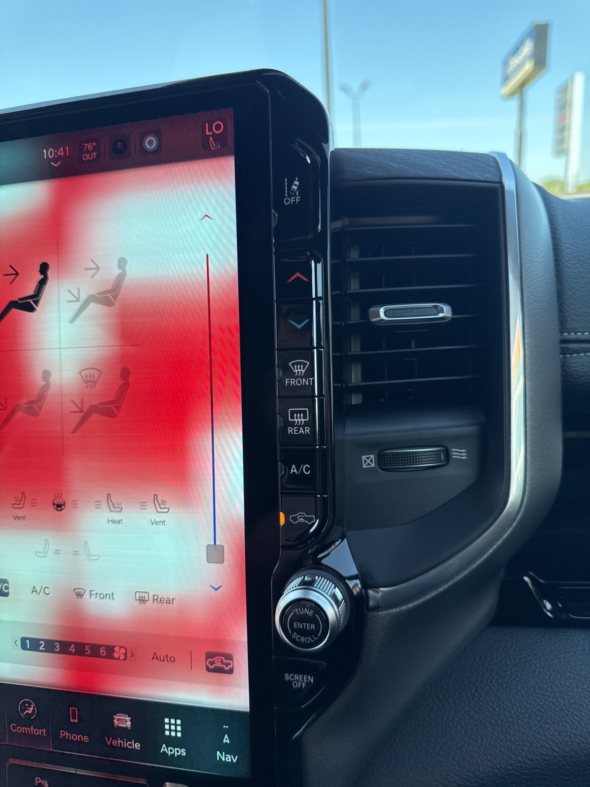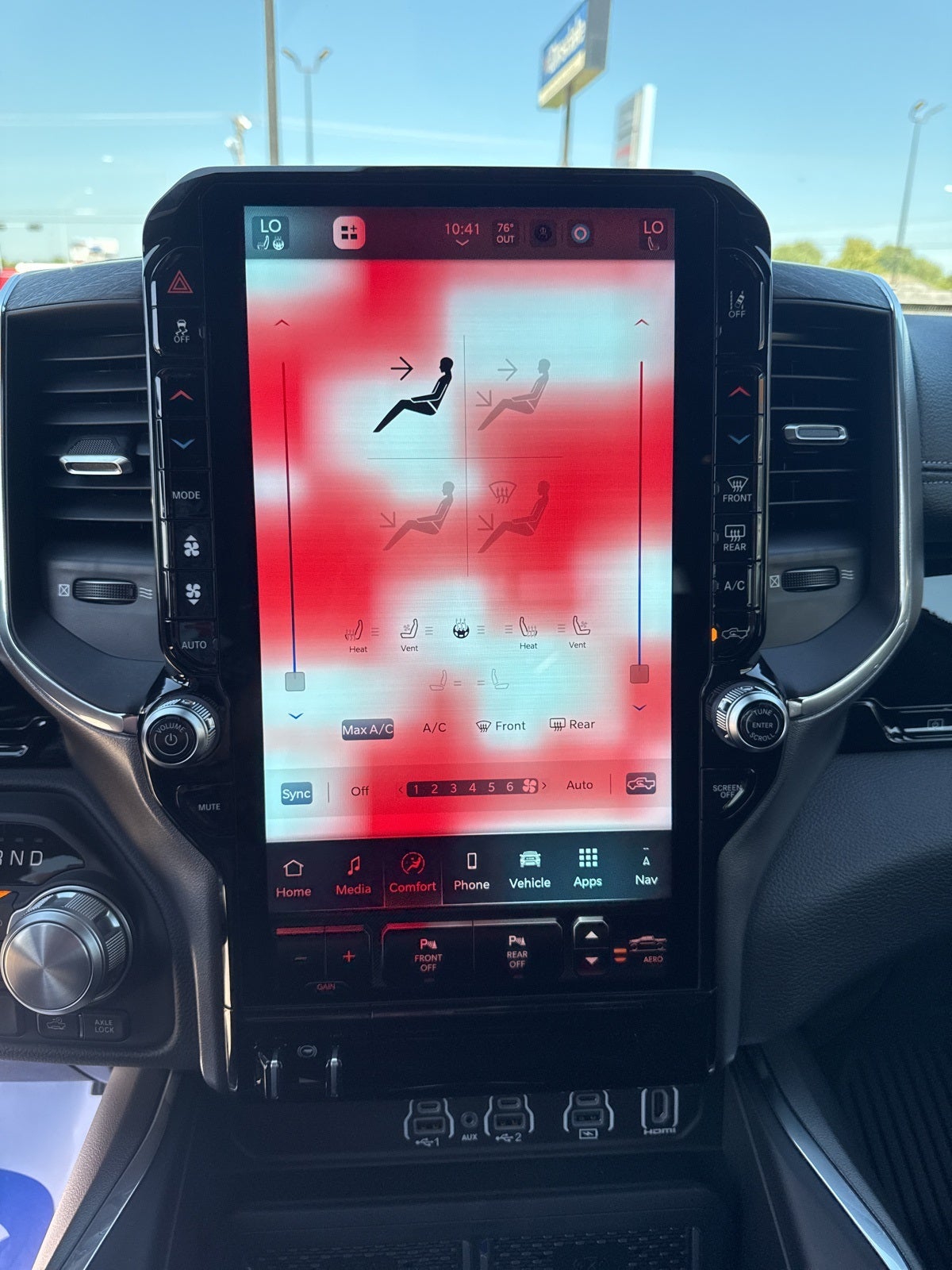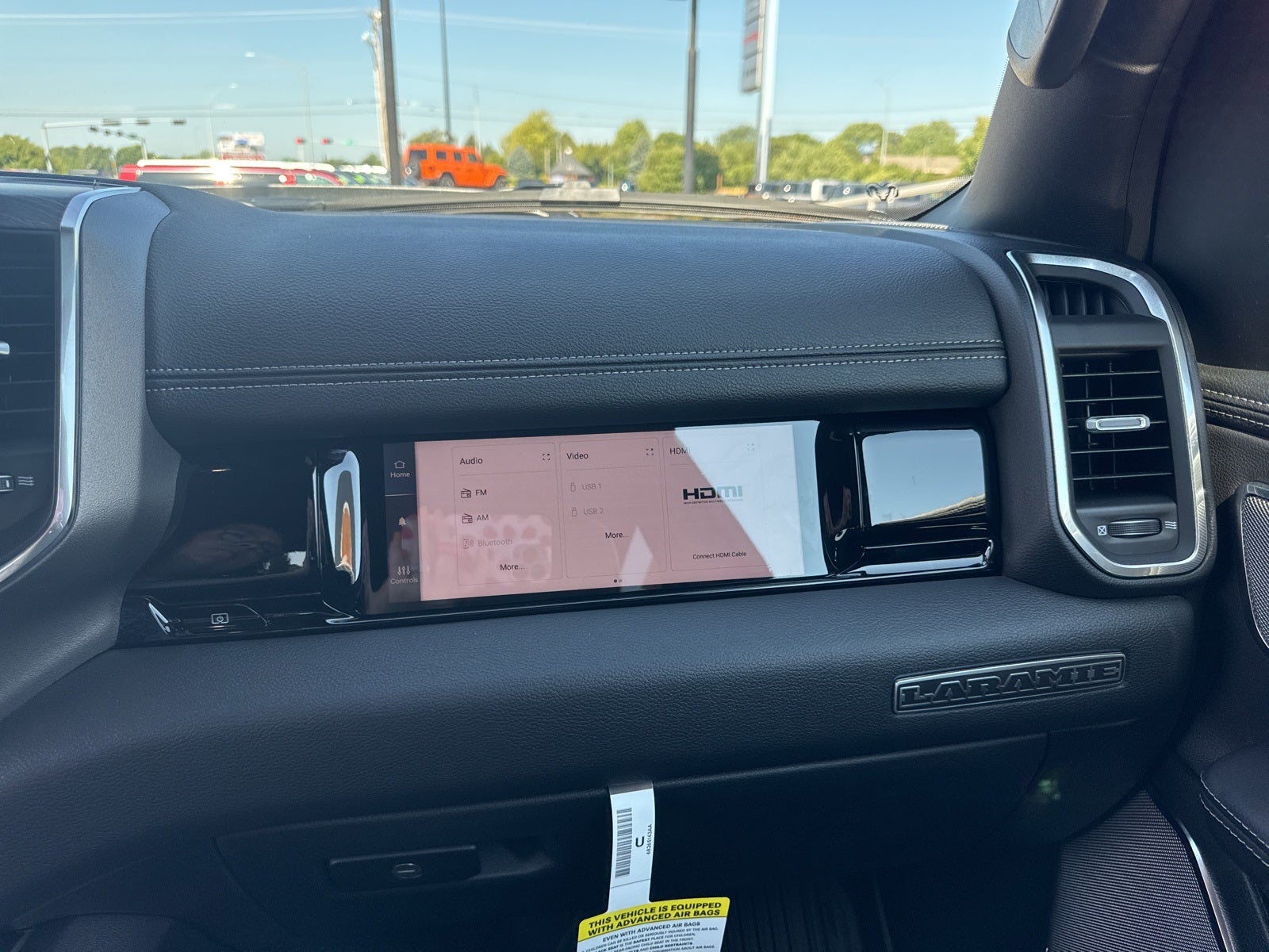 10 Speakers, 12-Way/1-Way Trailer Connector, 14.4 Touchscreen Display, 240 Amp Alternator, 4-Corner Air Suspension, 4-Wheel Disc Brakes, 4G LTE Wi-Fi Hot Spot, ABS brakes, Accent Color Door Handles, Accent Color Premium Power Mirrors, Accent Color Tailgate Handle, Active Driving Assist System, Active Noise Control System, Advanced Safety Group II, Air Conditioning, Alloy wheels, AM/FM radio: SiriusXM with 360L, Anti-Spin Differential Rear Axle, Apple CarPlay/Android Auto, Audio memory, Auto High-beam Headlights, Auto Power-Folding Mirrors, Auto-dimming door mirrors, Auto-Dimming Exterior Driver Mirror, Auto-dimming Rear-View mirror, Automatic temperature control, Bed Utility Group, Black Exterior Truck Badging, Black Headlamp Bezels, Black Interior Accents, Black Painted Exterior Mirrors Caps, Black Tail Lamp Bezels, Body Color Front Bumper, Body Color Rear Bumper with Step Pads, Brake assist, Bumpers: chrome, Chrome Exterior Mirrors, Cluster 12 TFT Color Display, Compass, Connected Travel and Traffic Services, Connectivity - US/Canada, Convex Wide-Angle Exterior Mirror Insert, Delay-off headlights, Dome Dual LED Reading Lamp, Driver door bin, Driver vanity mirror, Drowsy Driver Detection, Dual Exhaust with Black Tips, Dual front impact airbags, Dual front side impact airbags, Dual-Pane Panoramic Sunroof, E-Locker Rear Axle, Electronic Stability Control, Evasive Steer Assist, Exterior 115V AC Outlet, Exterior Mirrors Approach Lamps, Exterior Mirrors Courtesy Lamps, Exterior Mirrors with Heating Element, Exterior Mirrors with Memory, Exterior Mirrors with Supplemental Signals, Falken Brand Tires, Front anti-roll bar, Front Bucket Seats, Front Center Armrest w/Storage, Front dual zone A/C, Front Extra Heavy Duty Shock Absorbers, Front fog lights, Front License Plate Bracket, Front Passenger Interactive Display, Front reading lights, Front wheel independent suspension, Fully automatic headlights, Garage door transmitter, GPS Navigation, Grille Surround 3 Black Texture 2 Black, Hands-Free Active Driving Assist System, Harman/Kardon 19 Speaker Premium Sound, Heated door mirrors, Heated front seats, Heated rear seats, Heated steering wheel, Illuminated entry, Integrated Center Stack Radio, Integrated Voice Command with Bluetooth®, Intersection Collision Assist System, Laramie Level 2 Equipment Group, Leather steering wheel, Leather Trimmed Bucket Seats, LED Dome/Reading Lamp, Low tire pressure warning, Manufacturer's Statement of Origin, Memory seat, MOPAR 4 Adjustable Cargo Tie-Down Hooks, MOPAR Front and Rear Rubber Floor Mats, MOPAR Spray in Bedliner, Navigation System, Night Edition, Occupant sensing airbag, Off Road Decals, Off Road Group, Off-Road Information Pages, Outside temperature display, Overhead airbag, Overhead console, Panic alarm, ParkView Rear Back-Up Camera, Passenger door bin, Passenger vanity mirror, Pirelli Brand Tires, Power Deployable Running Boards, Power door mirrors, Power driver seat, Power passenger seat, Power steering, Power Tailgate, Power windows, Proximity Approach/Departure Lamps, Quick Order Package 21H Laramie, Radio data system, Radio: Uconnect 5 Nav with 14.4 Display, Radio: Uconnect 5 Navigation with 12.0 Display, Rain Sensitive Windshield Wipers, Raised Ride Height, RAM Grille Badge - Black, RAM Grille Badge - Chrome, RAM Tow Assist Kit, RamBox Cargo Management System, Rear anti-roll bar, Rear Extra Heavy Duty Shock Absorbers, Rear reading lights, Rear seat center armrest, Rear step bumper, Remote keyless entry, Security system, Selec-Speed Control, SiriusXM Radio Service, SiriusXM with 360L, Speed control, Split folding rear seat, Sport Performance Hood, Steering wheel mounted audio controls, Surround View Camera System, Tachometer, Telescoping steering wheel, Tilt steering wheel, Tow Hooks, Traction control, Traffic Sign Price includes: $3500 - 2026 National Retail Consumer Cash . Exp. 02/02/2