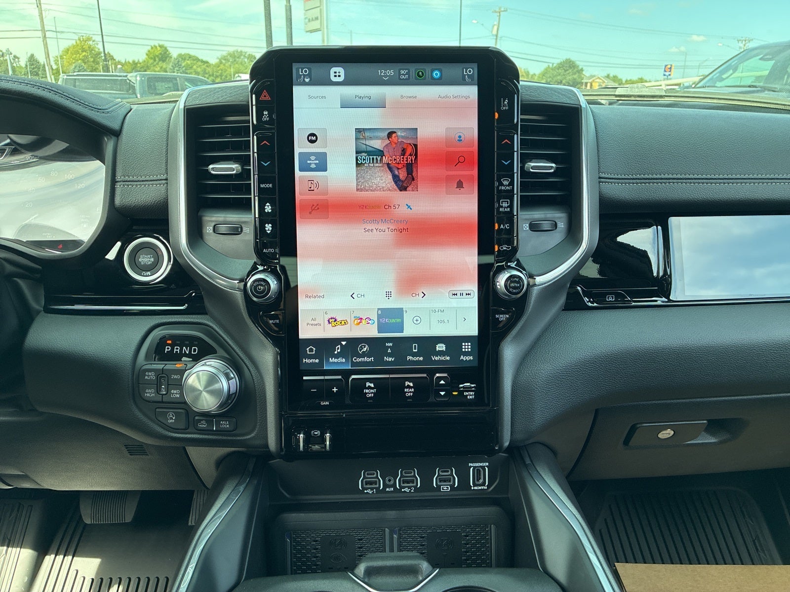 10 Speakers, 12-Way/1-Way Trailer Connector, 14.4 Touchscreen Display, 240 Amp Alternator, 3.55 Rear Axle Ratio, 3.92 Rear Axle Ratio, 4-Corner Air Suspension, 4-Wheel Disc Brakes, 4G LTE Wi-Fi Hot Spot, ABS brakes, Accent Color Door Handles, Accent Color Premium Power Mirrors, Accent Color Tailgate Handle, Active Driving Assist System, Advanced Safety Group II, Air Conditioning, Alloy wheels, AM/FM radio: SiriusXM with 360L, Anti-Spin Differential Rear Axle, Apple CarPlay/Android Auto, Audio memory, Auto High-beam Headlights, Auto Power-Folding Mirrors, Auto-dimming door mirrors, Auto-Dimming Exterior Driver Mirror, Auto-dimming Rear-View mirror, Automatic temperature control, Bed Utility Group, Black Exterior Truck Badging, Black Headlamp Bezels, Black Interior Accents, Black Painted Exterior Mirrors Caps, Black Tail Lamp Bezels, Body Color Front Bumper, Brake assist, Bumpers: chrome, Chrome Exterior Mirrors, Cluster 12 TFT Color Display, Compass, Connectivity - US/Canada, Convex Wide-Angle Exterior Mirror Insert, Delay-off headlights, Dome Dual LED Reading Lamp, Driver door bin, Driver vanity mirror, Drowsy Driver Detection, Dual front impact airbags, Dual front side impact airbags, Dual-Pane Panoramic Sunroof, E-Locker Rear Axle, Electronic Stability Control, Evasive Steer Assist, Exterior 115V AC Outlet, Exterior Mirrors Approach Lamps, Exterior Mirrors Courtesy Lamps, Falken Brand Tires, Front anti-roll bar, Front Bucket Seats, Front Center Armrest w/Storage, Front dual zone A/C, Front fog lights, Front License Plate Bracket, Front Passenger Interactive Display, Front reading lights, Front wheel independent suspension, Fully automatic headlights, Garage door transmitter, GPS Navigation, Grille Surround 3 Black Texture 2 Black, Hands-Free Active Driving Assist System, Heated door mirrors, Heated front seats, Heated rear seats, Heated steering wheel, Illuminated entry, Integrated Center Stack Radio, Intersection Collision Assist System, Laramie Level 2 Equipment Group, Leather steering wheel, Leather Trimmed Bucket Seats, LED Dome/Reading Lamp, Low tire pressure warning, Manufacturer's Statement of Origin, Memory seat, MOPAR 4 Adjustable Cargo Tie-Down Hooks, Navigation System, Night Edition, Occupant sensing airbag, Off Road Decals, Off Road Group, Off-Road Information Pages, Outside temperature display, Overhead airbag, Overhead console, Panic alarm, ParkView Rear Back-Up Camera, Passenger door bin, Passenger vanity mirror, Pirelli Brand Tires, Power Deployable Running Boards, Power door mirrors, Power driver seat, Power passenger seat, Power steering, Power Tailgate, Power windows, Proximity Approach/Departure Lamps, Quick Order Package 21H Laramie, Radio data system, Rain Sensitive Windshield Wipers, Raised Ride Height, RAM Grille Badge - Black, RAM Grille Badge - Chrome, RAM Tow Assist Kit, RamBox Cargo Management System, Rear anti-roll bar, Rear reading lights, Rear seat center armrest, Rear step bumper, Remote keyless entry, Security system, Selec-Speed Control, SiriusXM Radio Service, Speed control, Split folding rear seat, Sport Performance Hood, Steering wheel mounted audio controls, Surround View Camera System, Tachometer, Telescoping steering wheel, Tilt steering wheel, Tow Hooks, Traction control, Traffic Sign Recognition, Trailer Brake Control, Trip computer, Turn signal indicator mirrors, USB Host Flip, Variably intermittent wipers, Ventilated front seats, Voltmeter, Wheels: 20 x 9 Premium Paint/Polish, Wheels: 22 x 9 Forged Aluminum.