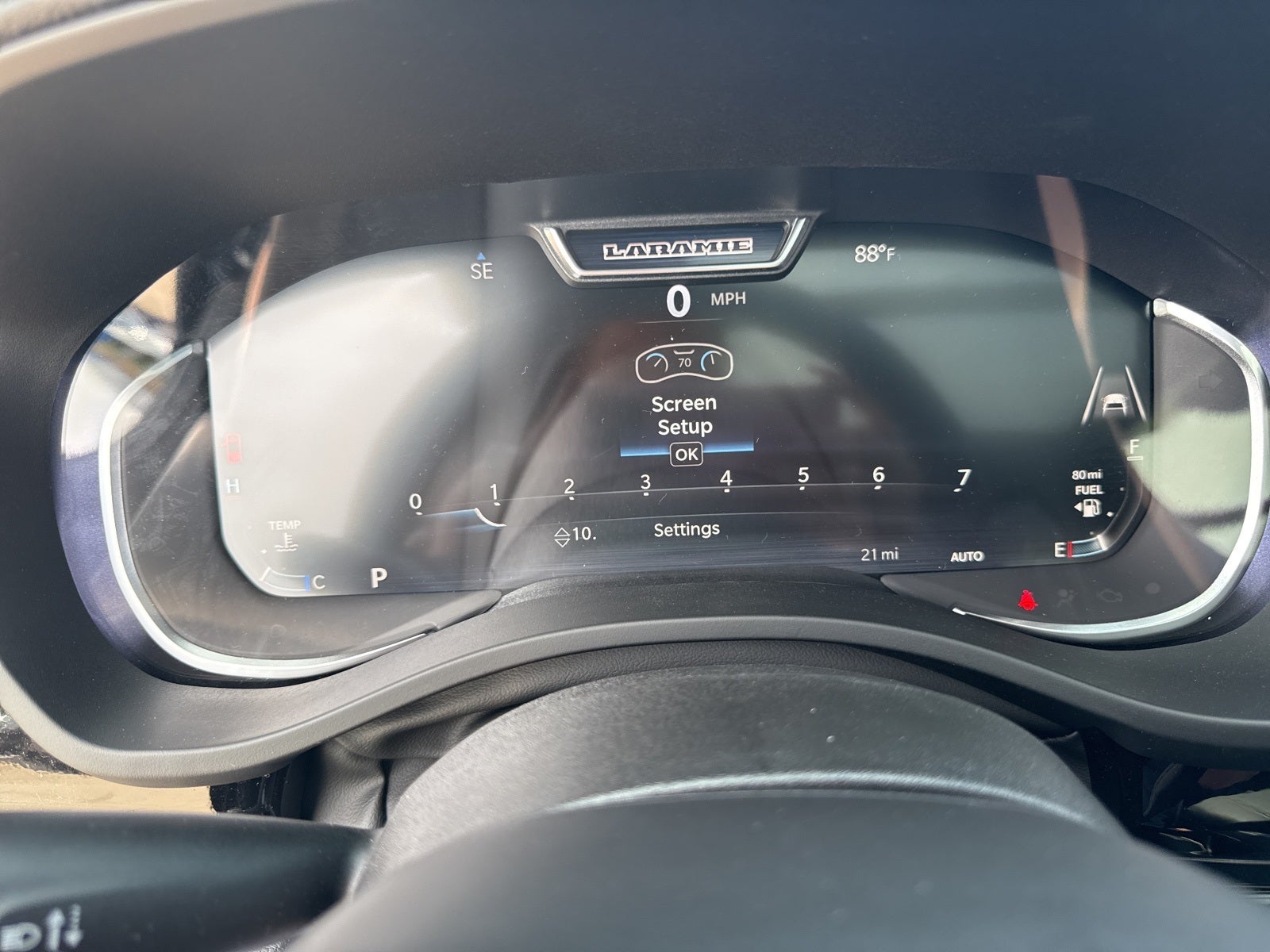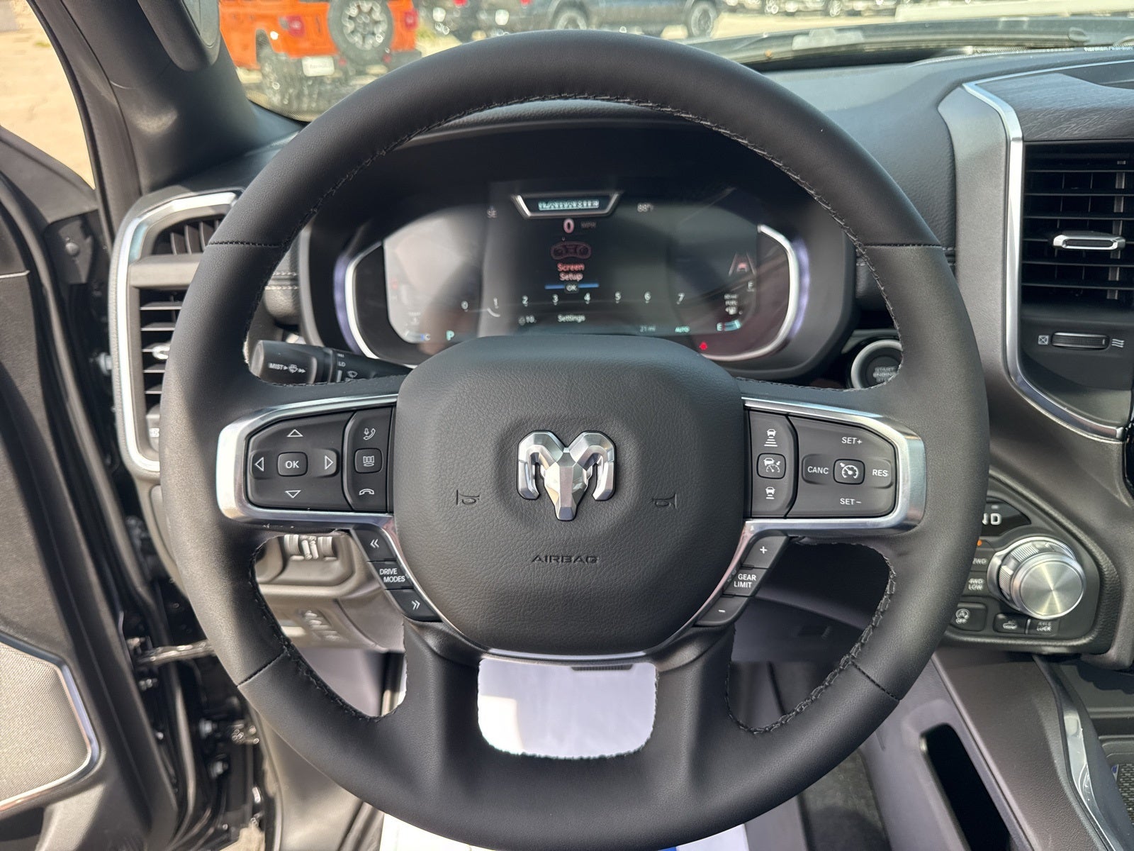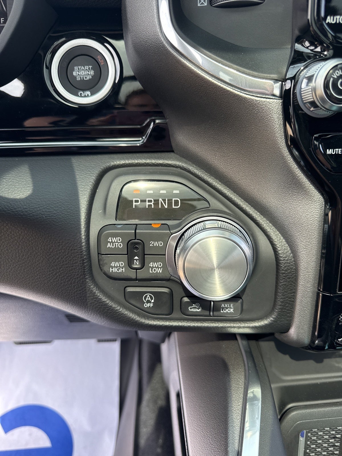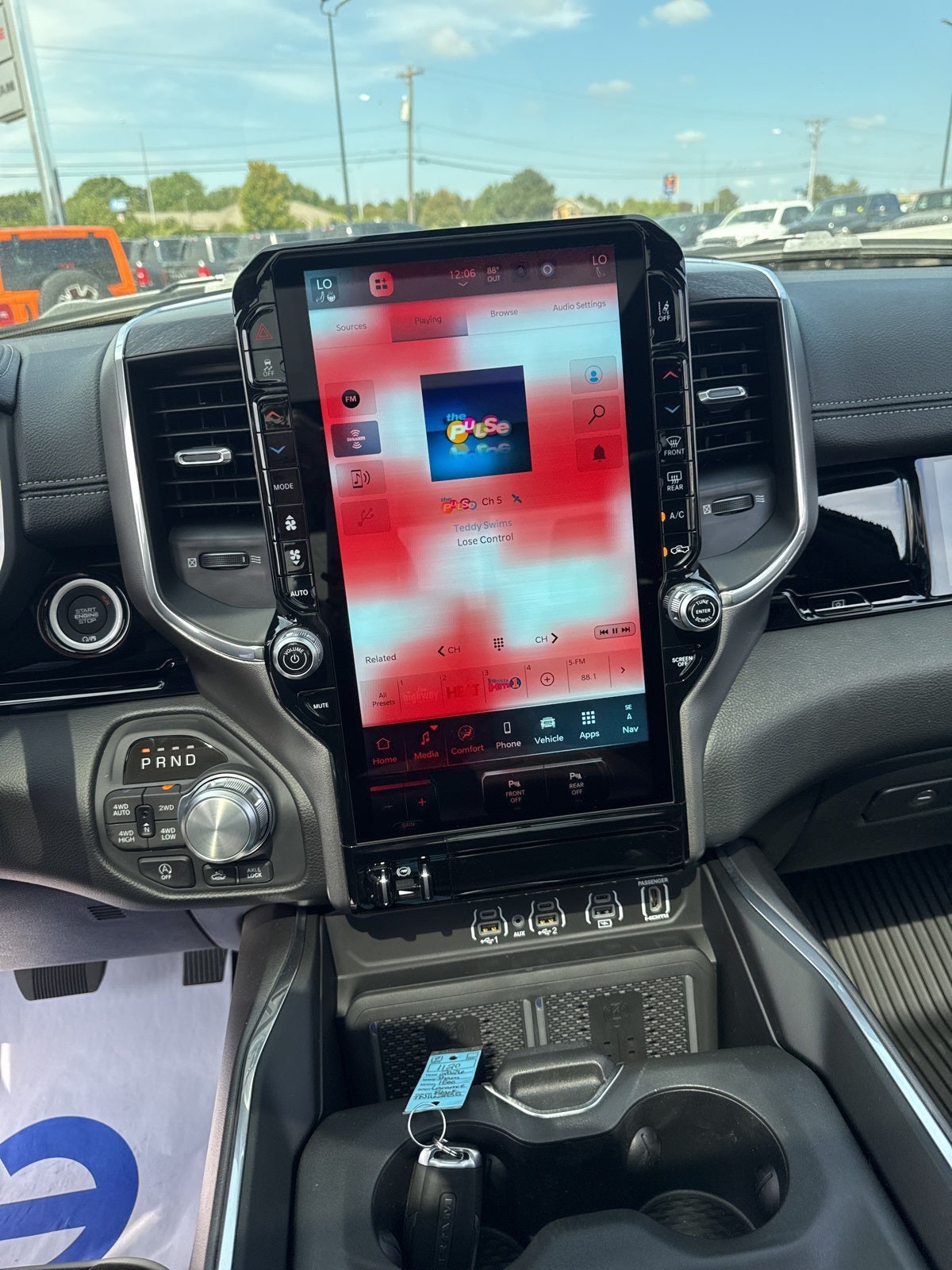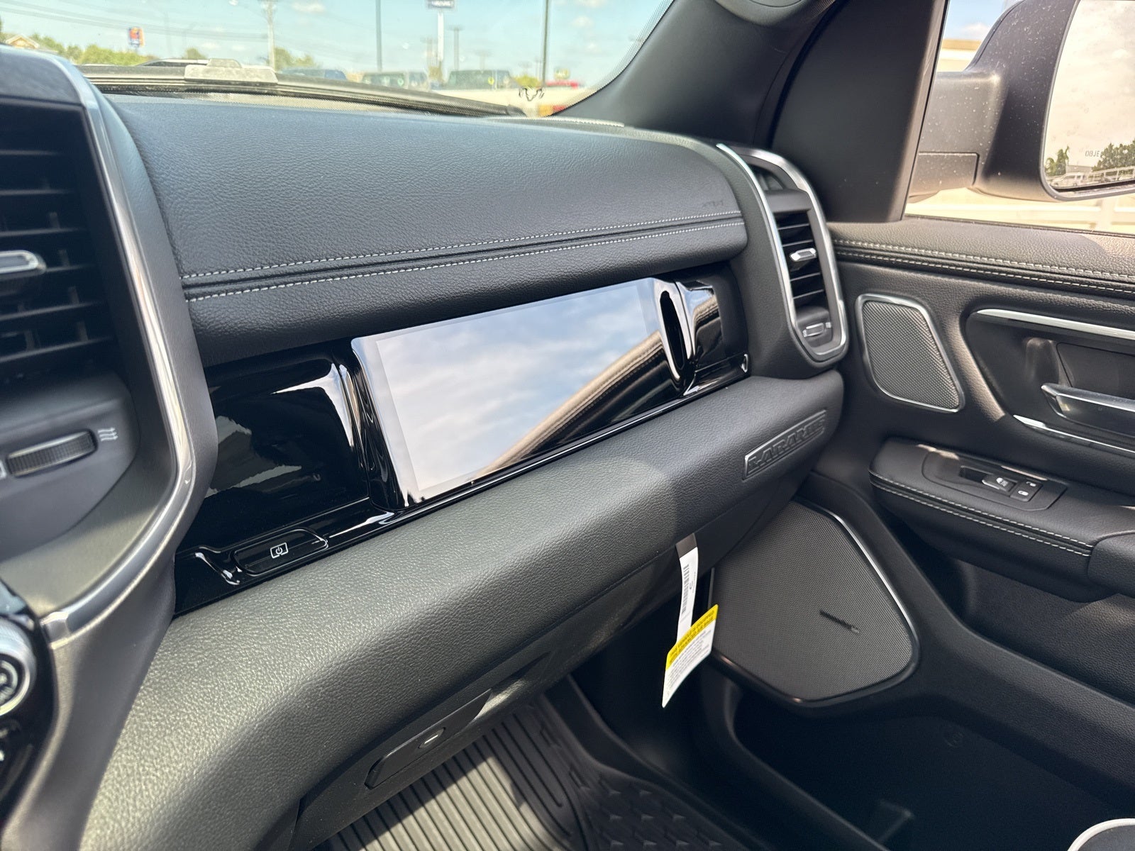 10 Speakers, 14.4 Touchscreen Display, 33 Gallon Fuel Tank, 4-Wheel Disc Brakes, 4G LTE Wi-Fi Hot Spot, ABS brakes, Accent Color Door Handles, Accent Color Premium Power Mirrors, Accent Color Tailgate Handle, Active Noise Control System, Air Conditioning, Alloy wheels, AM/FM radio: SiriusXM with 360L, Anti-Spin Differential Rear Axle, Apple CarPlay/Android Auto, Audio memory, Auto High-beam Headlights, Auto Power-Folding Mirrors, Auto-dimming door mirrors, Auto-Dimming Exterior Driver Mirror, Auto-dimming Rear-View mirror, Automatic temperature control, Bed Utility Group, Black Exterior Truck Badging, Black Headlamp Bezels, Black Interior Accents, Black Painted Exterior Mirrors Caps, Black Tail Lamp Bezels, Body Color Front Bumper, Body Color Rear Bumper with Step Pads, Brake assist, Bumpers: chrome, Chrome Exterior Mirrors, Cluster 12 TFT Color Display, Compass, Connected Travel and Traffic Services, Connectivity - US/Canada, Convex Wide-Angle Exterior Mirror Insert, Delay-off headlights, Dome Dual LED Reading Lamp, Driver door bin, Driver vanity mirror, Dual Exhaust with Black Tips, Dual front impact airbags, Dual front side impact airbags, Dual-Pane Panoramic Sunroof, E-Locker Rear Axle, Electronic Stability Control, Exterior 115V AC Outlet, Exterior Mirrors Approach Lamps, Exterior Mirrors Courtesy Lamps, Exterior Mirrors with Heating Element, Exterior Mirrors with Memory, Exterior Mirrors with Supplemental Signals, Falken Brand Tires, Front anti-roll bar, Front Bucket Seats, Front Center Armrest w/Storage, Front dual zone A/C, Front Extra Heavy Duty Shock Absorbers, Front fog lights, Front License Plate Bracket, Front Passenger Interactive Display, Front reading lights, Front wheel independent suspension, Fully automatic headlights, Garage door transmitter, GPS Navigation, Grille Surround 3 Black Texture 2 Black, Harman/Kardon 19 Speaker Premium Sound, Heated door mirrors, Heated front seats, Heated rear seats, Heated steering wheel, Illuminated entry, Integrated Center Stack Radio, Integrated Voice Command with Bluetooth®, Laramie Level 2 Equipment Group, Leather steering wheel, Leather Trimmed Bucket Seats, LED Dome/Reading Lamp, Low tire pressure warning, Manufacturer's Statement of Origin, Memory seat, MOPAR 4 Adjustable Cargo Tie-Down Hooks, MOPAR Front and Rear Rubber Floor Mats, MOPAR Spray in Bedliner, Navigation System, Night Edition, Occupant sensing airbag, Off Road Decals, Off Road Group, Off-Road Information Pages, Outside temperature display, Overhead airbag, Overhead console, Panic alarm, ParkView Rear Back-Up Camera, Passenger door bin, Passenger vanity mirror, Pirelli Brand Tires, Power Deployable Running Boards, Power door mirrors, Power driver seat, Power passenger seat, Power steering, Power Tailgate, Power windows, Proximity Approach/Departure Lamps, Quick Order Package 21H Laramie, Radio data system, Radio: Uconnect 5 Nav with 14.4 Display, Radio: Uconnect 5 Navigation with 12.0 Display, Rain Sensitive Windshield Wipers, Raised Ride Height, RAM Grille Badge - Black, RAM Grille Badge - Chrome, Rear anti-roll bar, Rear Extra Heavy Duty Shock Absorbers, Rear reading lights, Rear seat center armrest, Rear step bumper, Remote keyless entry, Security system, Selec-Speed Control, SiriusXM Radio Service, SiriusXM with 360L, Speed control, Split folding rear seat, Sport Performance Hood, Steering wheel mounted audio controls, Tachometer, Telescoping steering wheel, Tilt steering wheel, Tow Hooks, Traction control, Trailer Brake Control, Tri-Fold Tonneau Cover, Trip computer, Turn signal indicator mirrors, USB Host Flip, Variably intermittent wipers, Ventilated front seats, Voltmeter, Wheels: 20 x 9 Premium Paint/Polish, Wheels: 22 x 9 Forged Aluminum.