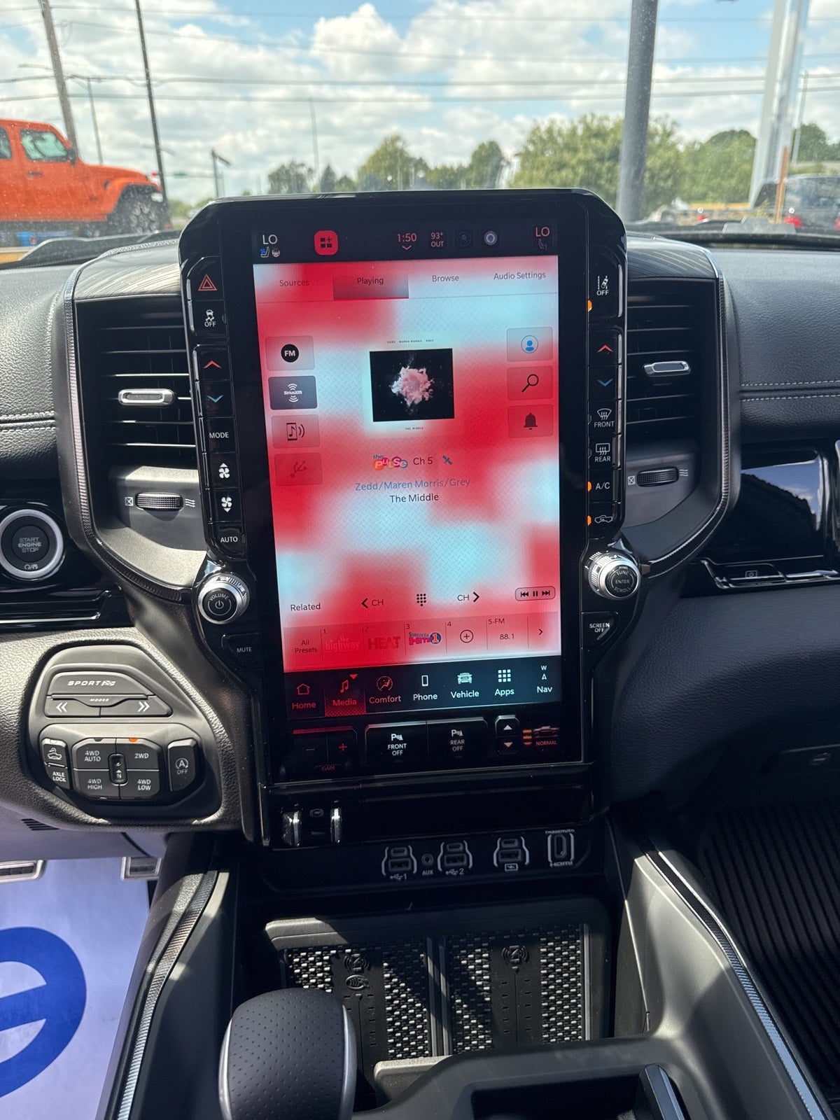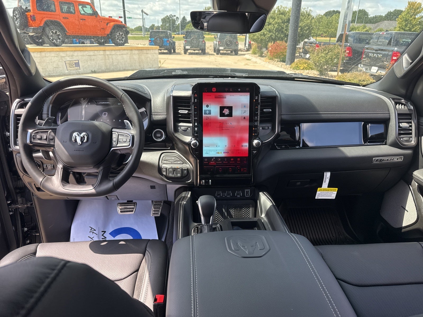 10 Speakers, 115V Auxiliary Rear Power Outlet, 14.4 Touchscreen Display, 2-Door Passive Entry, Front Door Locks, 3.92 Rear Axle Ratio, 33 Gallon Fuel Tank, 4 Way Front Headrests, 4-Corner Air Suspension, 4-Wheel Disc Brakes, 4G LTE Wi-Fi Hot Spot, ABS brakes, Accent Color Door Handles, Accent Color Premium Power Mirrors, Accent Color Tailgate Handle, Active Noise Control System, Air Conditioning, Alloy wheels, AM/FM radio: SiriusXM with 360L, Apple CarPlay, Apple CarPlay/Android Auto, Auto High-beam Headlights, Auto Power-Folding Mirrors, Auto-Dimming Exterior Driver Mirror, Auto-dimming Rear-View mirror, Automatic temperature control, Bed Utility Group, Black Exterior Mirrors, Black Painted Exterior Mirrors Caps, Brake assist, Bucket Seats, Cloth/Vinyl Bucket Seats, Compass, Connected Travel and Traffic Services, Connectivity - US/Canada, Convex Wide-Angle Exterior Mirror Insert, Delay-off headlights, Disassociated Touchscreen Display, Dome Dual LED Reading Lamp, Driver door bin, Driver Seat Memory, Driver vanity mirror, Dual front impact airbags, Dual front side impact airbags, Dual Wireless Charging Pad, Dual-Pane Panoramic Sunroof, Electronic Stability Control, Engine Block Heater, Exterior 115V AC Outlet, Exterior Mirrors Approach Lamps, Exterior Mirrors Courtesy Lamps, Exterior Mirrors with Heating Element, Exterior Mirrors with Memory, Exterior Mirrors with Supplemental Signals, Floor Console, Front anti-roll bar, Front Bucket Seats, Front Center Armrest w/Storage, Front dual zone A/C, Front fog lights, Front License Plate Bracket, Front Passenger Interactive Display, Front reading lights, Front Seat Back Map Pockets, Front wheel independent suspension, Full Length Upgraded Floor Console, Fully automatic headlights, G/T Decal, G/T Exhaust, G/T Package, Garage door transmitter, Global Telematics Box Module, Google Android Auto, GPS Antenna Input, GPS Navigation, GT Interior Theme, Harman/Kardon 19 Speaker Premium Sound, HD Radio, Heated door mirrors, Heated Front Seats, Heated front seats, Heated Second Row Seats, Heated Steering Wheel, Heated steering wheel, Illuminated entry, Integrated Center Stack Radio, Integrated Voice Command with Bluetooth®, Leather steering wheel, Leather Wrapped Shift Knob, Leather-Wrapped Steering Wheel, Leather/Vinyl Bucket Seats, Low tire pressure warning, Manual Folding Exterior Mirrors, Manufacturer's Statement of Origin, Media Hub with 2 Charge Only USBs, MOPAR 4 Adjustable Cargo Tie-Down Hooks, Mopar Black Tubular Side Steps, MOPAR Bright Pedal Kit, MOPAR Spray in Bedliner, Multi-Function Tailgate, Navigation System, Occupant sensing airbag, Off-Road Information Pages, Outside temperature display, Overhead airbag, Overhead console, Panic alarm, ParkView Rear Back-Up Camera, Passenger door bin, Passenger vanity mirror, Performance Pages, Power 2-Way Driver Lumbar Adjust, Power 2-Way Passenger Lumbar Adjust, Power 4-Way Driver Lumbar Adjust, Power 4-Way Passenger Lumbar Adjust, Power Adjust 8-Way Driver Seat, Power Adjust 8-Way Front Passenger Seat, Power Adjustable Pedals with Memory, Power door mirrors, Power driver seat, Power steering, Power Tailgate, Power windows, Proximity Approach/Departure Lamps, Quick Order Package 21W Rebel, Radio data system, Radio: Uconnect 5 Nav with 14.4 Display, Radio: Uconnect 5 Navigation with 12.0 Display, Radio/Driver Seat/Mirrors/Pedals Memory, Rain Sensitive Windshield Wipers, RAM Tow Assist Kit, RAM's Head Badge, RamBox Cargo Management System, Rear 60/40 Folding Seat, Rear 60/40 Folding Split Recline Seat, Rear anti-roll bar, Rear seat center armrest, Rear step bumper, Rear Window Defroster, Rebel Level 2 Equipment Group, Remote keyless entry, Security Alarm, SiriusXM Radio Service, SiriusXM with 360L, Smartphone as a Key Capable, Speed control, Split folding rear seat, Steering wheel mounted Price includes: $3500 - 2026 National Retail Consumer Cash . Exp. 02/02/2