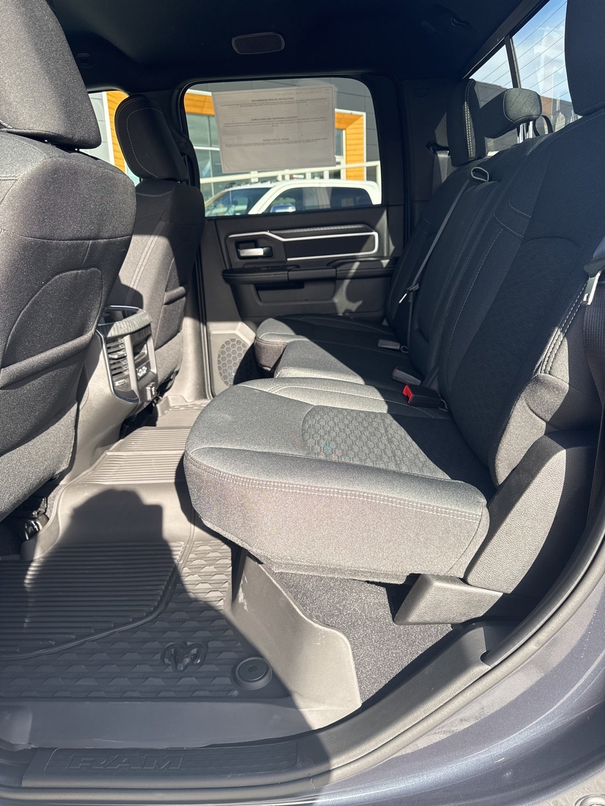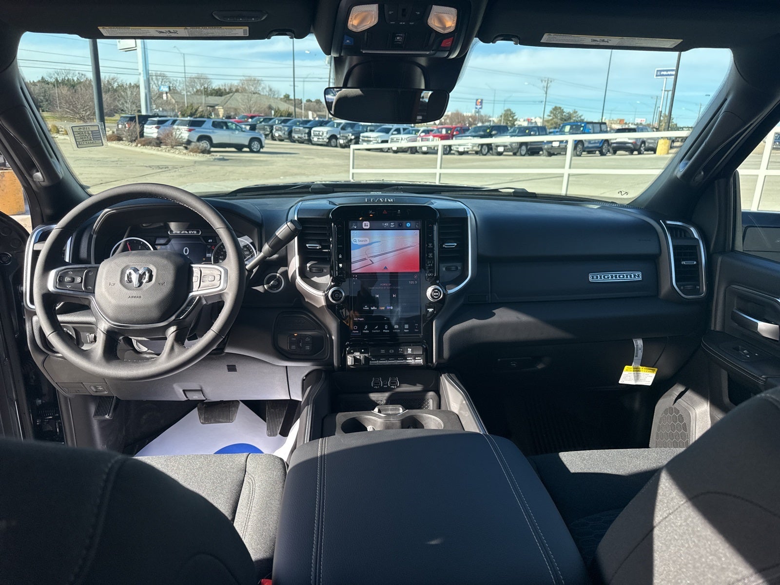 115-Volt Auxiliary Front Power Outlet, 115V Auxiliary Rear Power Outlet, 12 Touchscreen Display, 2 Way Rear Headrest Seat, 2nd Row in Floor Storage Bins, 4 Way Front Headrests, 4-Wheel Disc Brakes, 40/20/40 Split Bench Seat, 400W Inverter, 4G LTE Wi-Fi Hot Spot, 5th Wheel/Gooseneck Towing Prep Group, 6 Speakers, 9 Alpine Speakers with Subwoofer, ABS brakes, Active Lane Management System, Adaptive Steering System, Air Conditioning, Air Conditioning ATC with Dual Zone Control, Alexa Built-in, Alloy wheels, AM/FM radio: SiriusXM, Anti-Spin Differential Rear Axle, Apple CarPlay, Apple CarPlay/Android Auto, Auto High Beam Headlamp Control, Auto Power-Folding Mirrors, Auto-Dimming Rear-View Mirror, Big Horn Level 2 Plus Equipment Group, Black Exterior Mirrors, Black Exterior Truck Badging, Black Interior Accents, Black Wheel Center Hub, Blind Spot and Cross Path Detection, Body Color Grille-Surround, Brake assist, Bucket Seats, Bumpers: chrome, Center Hub, Center Stop Lamp with Cargo View Camera, Clearance Lamps, Cloth 40/20/40 Bench Seat, Cluster 7.0 TFT Color Display, Cold Weather Group, Compass, Connected Travel and Traffic Services, Connectivity - US/Canada, Dampened Tailgate, Dash Pass Thru Wire Circuits, Delay-off headlights, Disassociated Touchscreen Display, Driver door bin, Drowsy Driver Detection, Dual front impact airbags, Dual front side impact airbags, Dual Glove Boxes, Dual Wireless Charging Pad, Electronic Stability Control, Emergency Vehicle Alert System (EVAS), Engine Block Heater, Exterior 115V AC Outlet, Exterior Mirrors Courtesy Lamps, Exterior Mirrors with Heating Element, Exterior Mirrors with Supplemental Signals, Foam Bottle Insert (door Trim Panel), Folding Flat Load Floor Storage, Footwell Courtesy Lamp, For Details, Visit DriveUconnect.com, For More Info, Call 800-643-2112, Forward and Reverse Utility Lights, Front anti-roll bar, Front Armrest with Cupholders, Front Center Armrest w/Storage, Front fog lights, Front License Plate Bracket, Front Performance Tuned Shock Absorbers, Front reading lights, Front Seat Back Map Pockets, Full Length Upgraded Floor Console, Fully automatic headlights, Global Telematics Box Module, Gloss Black Nostrils/Mic Black Grille, Glove Box Lamp, Google Android Auto, GPS Antenna Input, GPS Navigation, HD Radio, Heated door mirrors, Heated Front Seats, Heated Steering Wheel, Hill Assist, Illuminated entry, Instrument Panel Mounted Auxiliary Switches, Integrated Voice Command with Bluetooth®, LED Bed Lighting, LED Tail Lamps, Locking Lower Glove Box, Low tire pressure warning, Luxury Steering Wheel, Manual Adjust 4-Way Driver Seat, Manual Adjust 4-Way Front Passenger Seat, Manufacturer's Statement of Origin, Media Hub with 2 Charge Only USBs, Mirror Running Lights, MOPAR Deployable Bed Step, MOPAR Front and Rear Rubber Floor Mats, MOPAR Spray in Bedliner, MOPAR Winter Front Grille Cover, Night Edition, Occupant sensing airbag, Off Road Package, Off-Road Info Pages, Outside temperature display, Overhead airbag, Overhead console, Painted Front Bumper, Painted Rear Bumper, Panic alarm, ParkView Rear Back-Up Camera, Passenger door bin, Passenger vanity mirror, Power 2-Way Driver Lumbar Adjust, Power Adjust 8-Way Driver Seat, Power Adjust Mirrors, Power Adjustable Pedals, Power door mirrors, Power Heated Folding Telescopic Mirrors, Power steering, Power Telescoping Mirrors, Power windows, Power-Adjustable Convex Aux Mirrors, Premium Cloth Bucket Seats, Quick Order Package 24Z Big Horn, Radio data system, Radio: Uconnect 5 Navigation with 12.0 Display, Radio: Uconnect 5 with 8.4 Display, Rain Sensitive Windshield Wipers, Rear 60/40 Folding Seat, Rear anti-roll bar, Rear Dome with on/Off Switch Lamp, Rear Folding Seat, Rear Performance Tuned Shock Absorbers, Rear Power Sliding Window, Rear seat center armrest, Rear step bumper, Rear window defroster, Red Tail Lamp Bezels, Price includes: $1000 - 2026 National Bonus Cash . Exp. 02/02/2